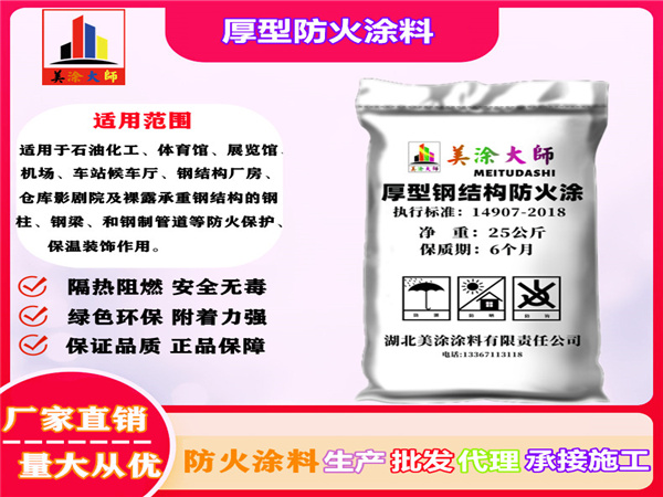 1、厚型钢结构浦口防火涂料是以无机绝热材料为主要成分组成,具有不腐蚀钢材、不与任何防腐底漆起化学反应、无刺激性气味、涂层质量轻(结构荷载重量相对也轻)、单位涂覆面积大、遇火时不产生烟气、不释放有害气体等特点。因此适用于各种新建、扩建和改建的工业与民用建筑工程中钢结构承重构件的防火涂装及防火保护,是一种理想的防火隔热涂料。